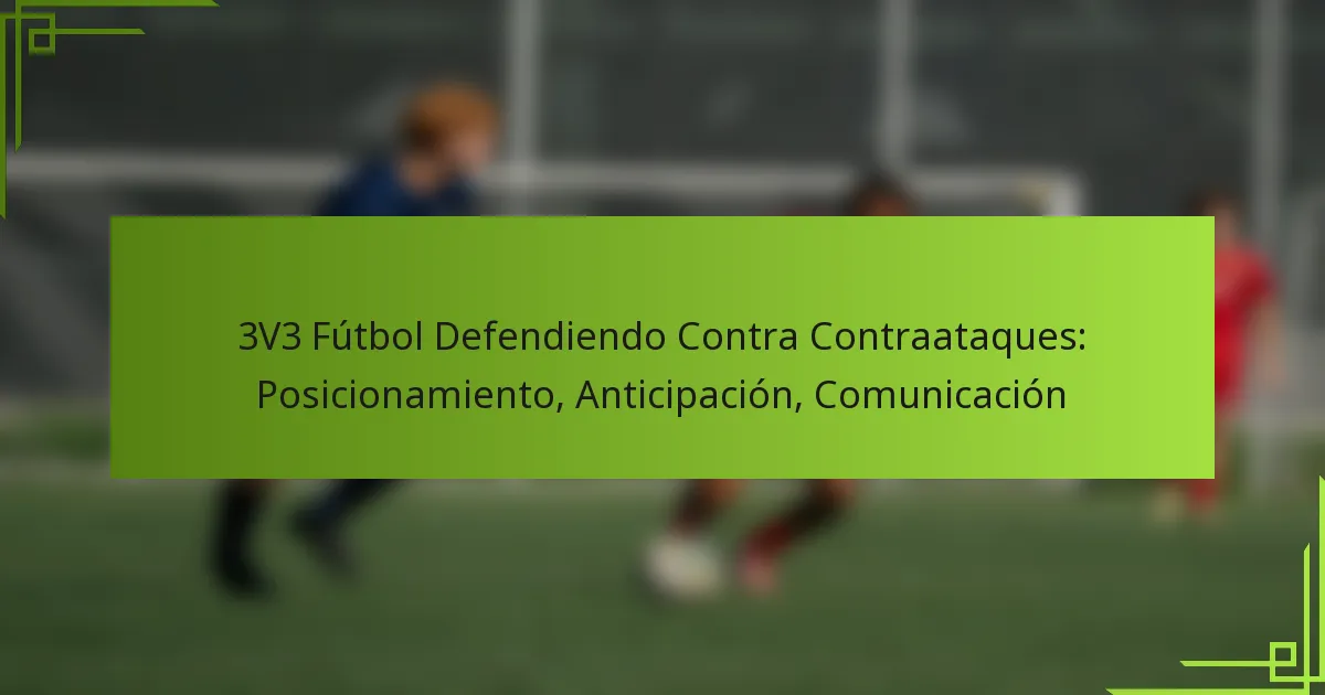 Defenderse contra los contraataques en el fútbol 3v3 requiere un enfoque estratégico que enfatiza el posicionamiento efectivo, la anticipación y la comunicación. Al mantener la conciencia del área de juego y reconocer los patrones de los oponentes, los defensores pueden interrumpir los ataques antes de que ganen impulso. Además, una comunicación clara entre compañeros de equipo mejora la coordinación, permitiendo reacciones rápidas ante amenazas potenciales.